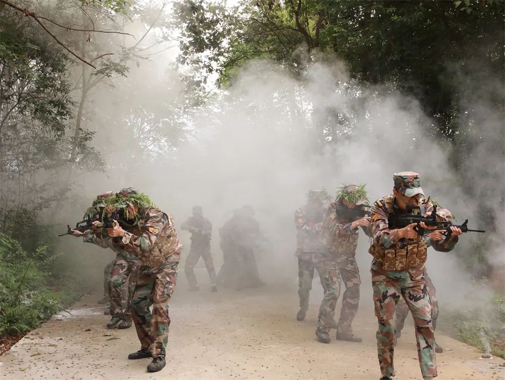 行军途中有“彩蛋”:模拟炮火封锁地带,侦查小分队穿越火线占领隘口要点,同学们做好防“毒气”🍭、“毒烟”安全防护🤐,急行突击👩🦰。