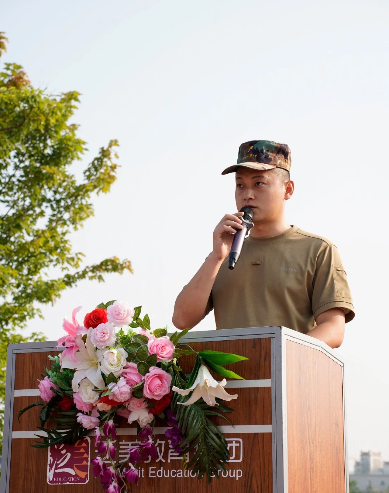 军事训练教官代表刘珈轩代表全体教官郑重承诺:我们将严于律己🎍、严格管理,一切从自我做起,以良好的军人形象带领大家,以过硬的军事本领引导大家;将以身作则、模范带头👕,认真履行一名教官应尽的职责⛏,因材施教、文明施教🧱。事事以身作则,发扬不怕苦🚟、不怕累的精神🤹🏼‍♂️,给同学们树好榜样,立好标杆👨🏿‍🔧。