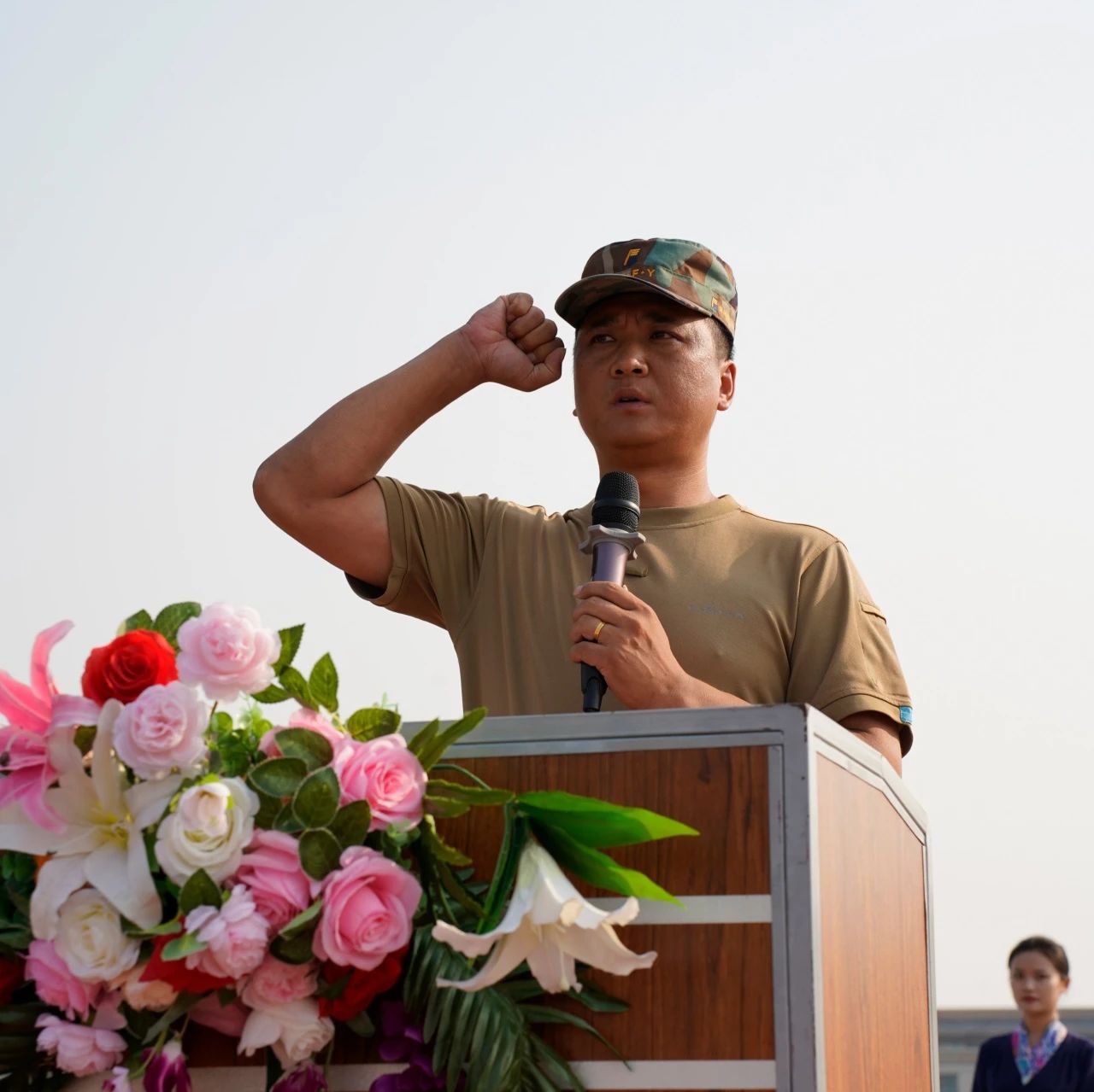 在总教官王凤春的带领下,全体参训学生庄严宣誓🧑🏻‍🌾: