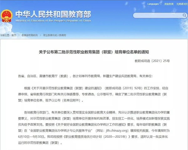 教育部公布第二批示范性职业教育集团(联盟)培育单位名单,西航入选为全国示范性职教集团牵头单位