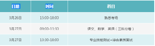 1.2021年高职单招考试科目及时间安排