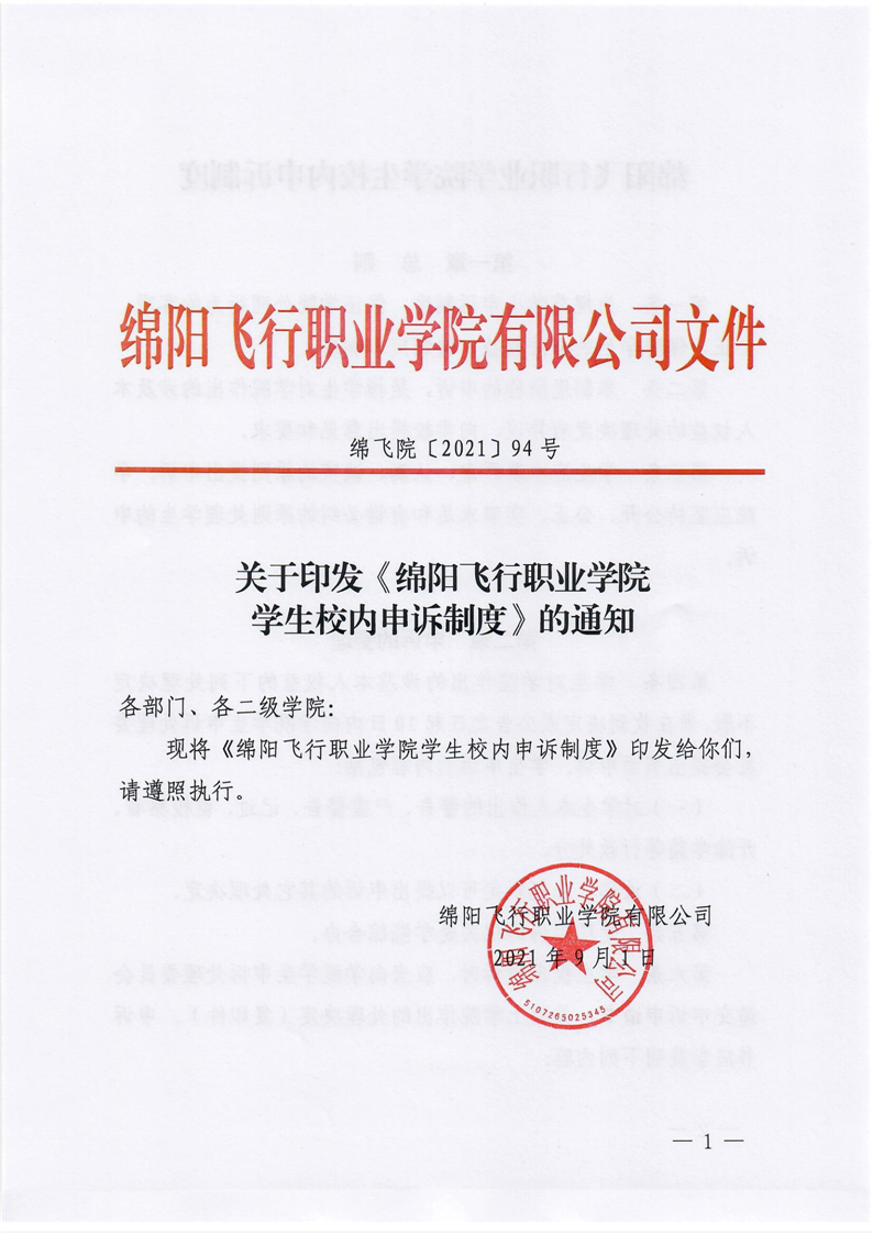 关于印发《神彩app下载学生校内申诉制度》的通知