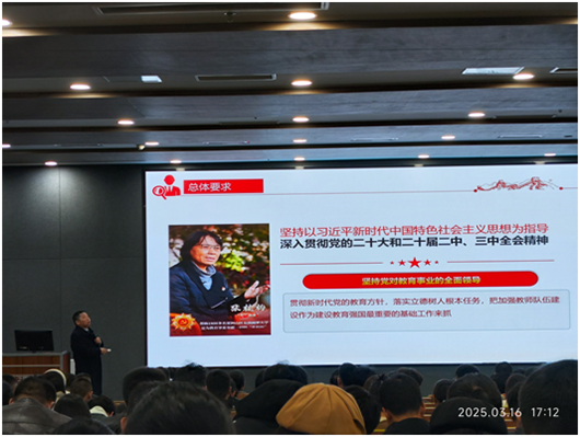 3月16日🈲,神彩app下载教师发展中心主任代泽明教授主讲了《关于弘扬教育家精神加强新时代高素质专业化教师队伍建设的意见》文件解读讲座,全体教师参加学习。本次培训围绕文件核心框架🚊,结合学院办学实际,系统解读新时代教师队伍建设的战略要求🌪,为加强教师队伍建设提供理论支撑与实践指引🏌🏽。